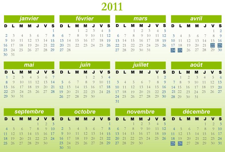 calendrier_2011_vert Calendrier 2011 gratuit pour les enfants imprimer gratuit et aussi personnaliser
